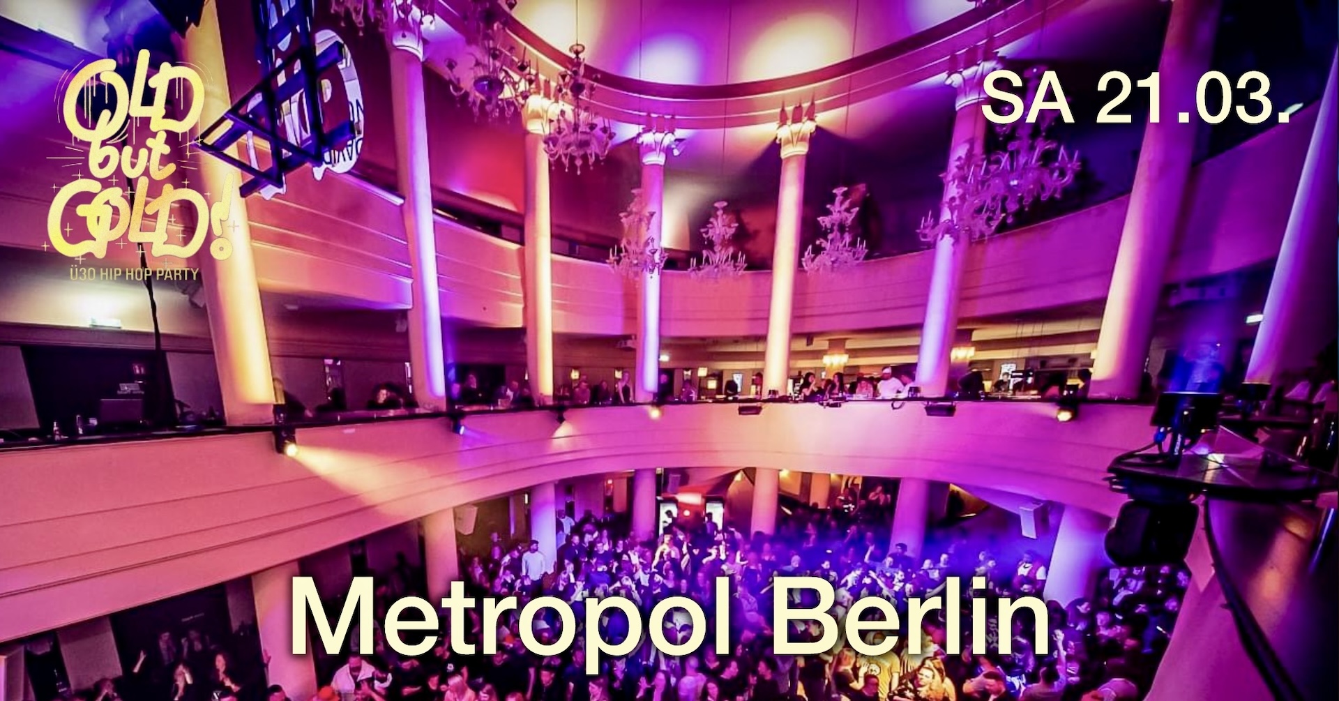 Am 21.3. feiern wir auf der Old but Gold Ü30 Hip Hop Party mit Ausweispflicht in Berlin im Metropol Theater mit einem übertrieben krassen Lineup on 2 Floors + Special Guest Denyo an den Turntables & am Mic!